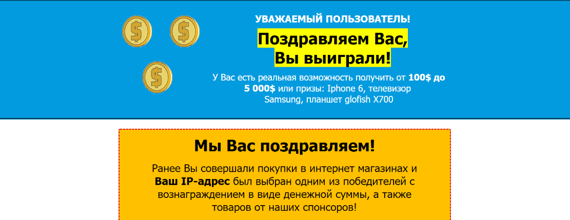 Поздравляем, вы выиграли, хоть нигде и не играли