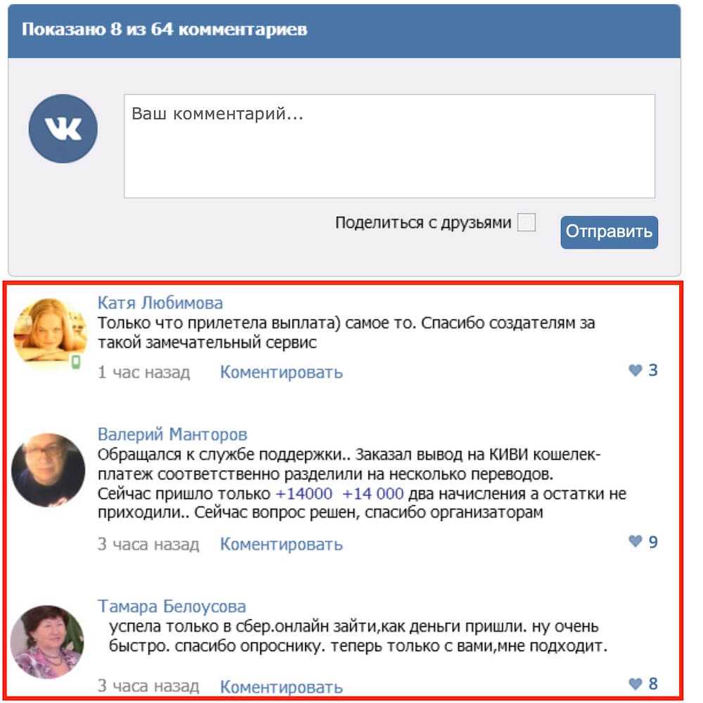 Даже если комментарии “настоящие” и на авторов можно посмотреть во ВКонтакте, то внимательно изучите их странички. Они оформлены все одинаково и сделаны просто для видимости.