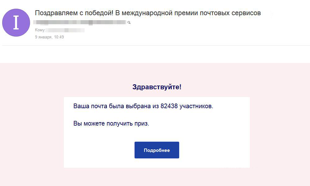 Суть предложения. На электронную почту приходит письмо, в котором сообщают, что вы выиграли джекпот в лотерее, премию или просто крупную сумму.