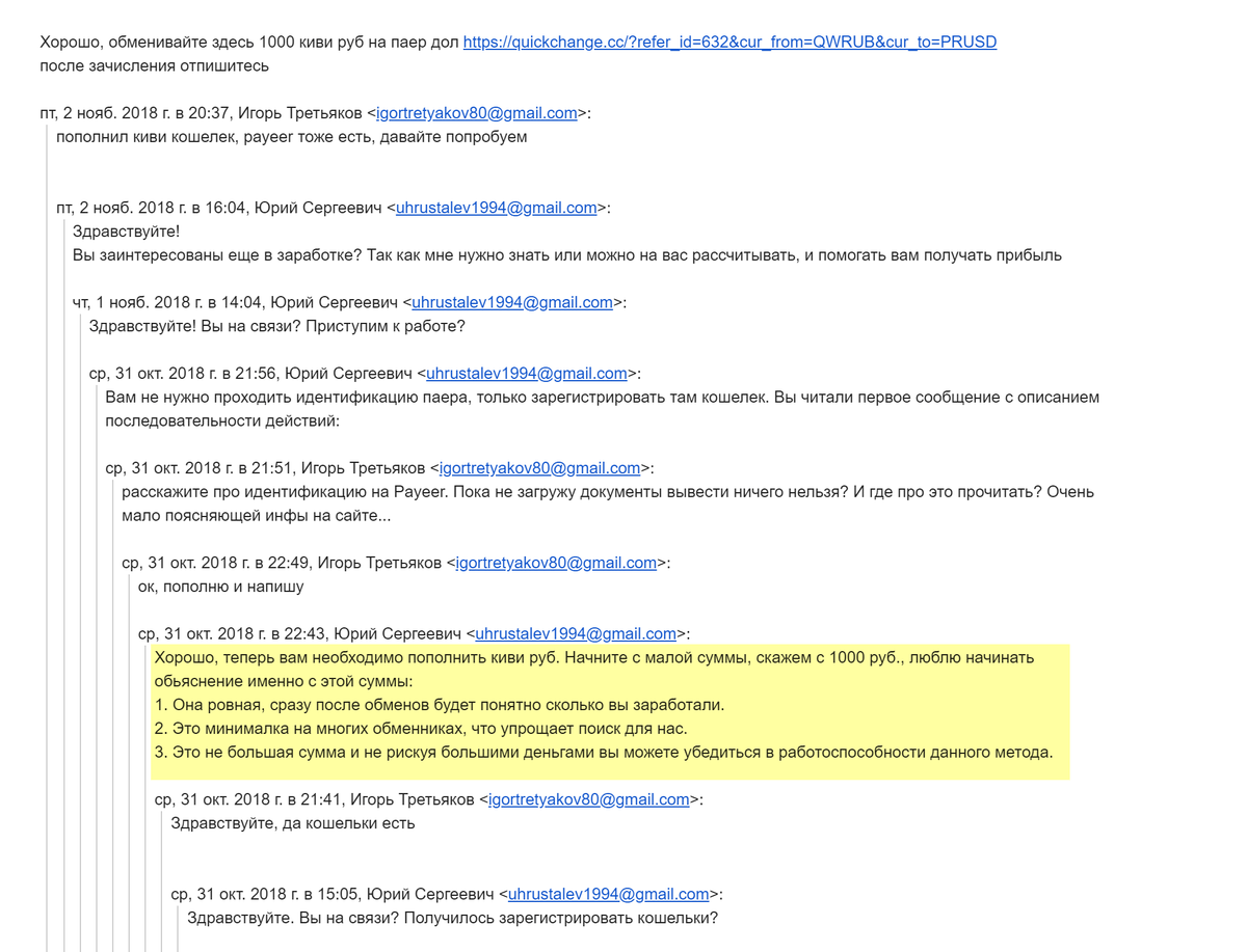 Куратор дал ссылки и предложил начать обмен с 1000 рублей. Игорь Третьяков — это мой псевдоним
