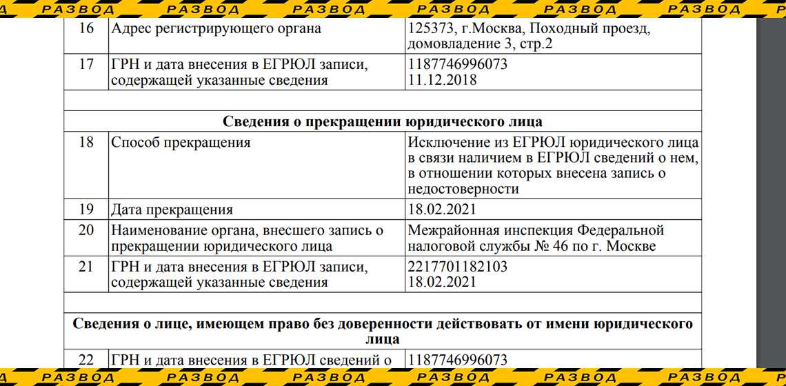 Зато приложены документы Российской Федерации. Но вместо ИНН, было прикреплено свидетельство о постановке на учет. Это показалось странным, и мы нашли ИНН, в котором написано о том, что юридическое лицо не действует с 18.02.2021. Есть ли смысл проверять адреса после этого?