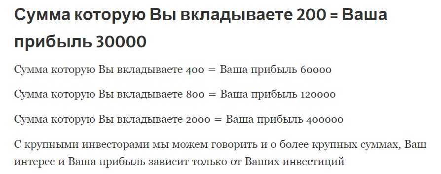 - по инвестициям 200 р. выплата 30000 р.;