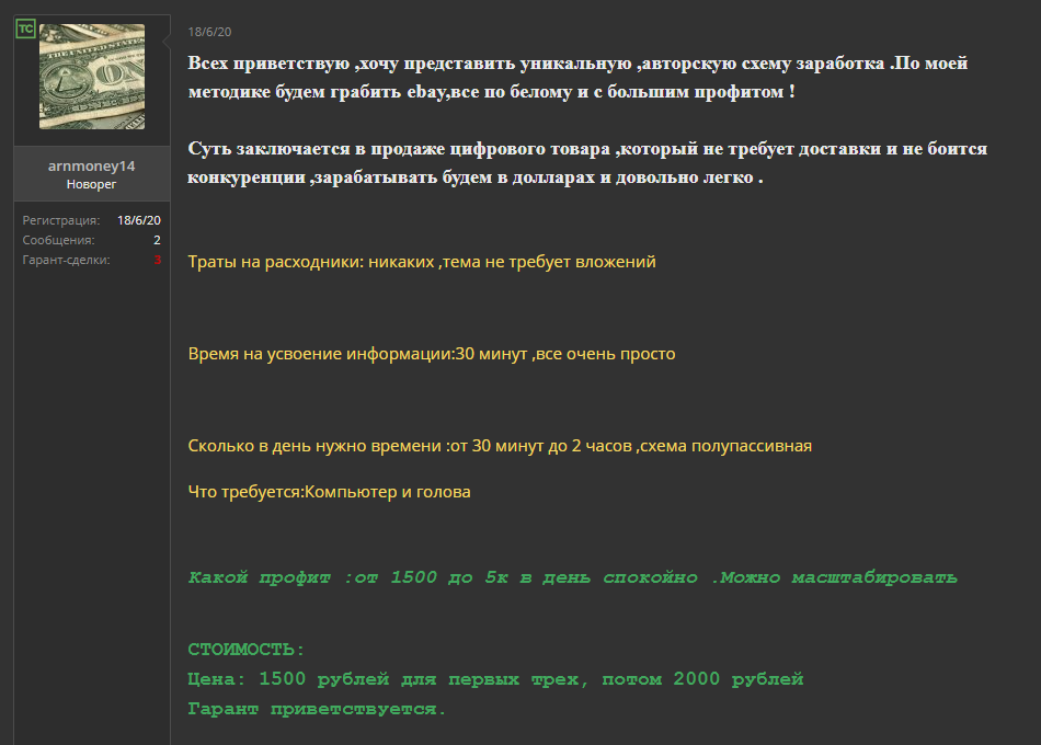Зато есть риск потерять деньги, за которые схему покупают. Например, покупатель заплатит, а продавец пришлет ему учебник по созданию сайтов. Одна беда: он неоригинальный, его скачали из интернета. А высокая стоимость — ну так извините, рынок.