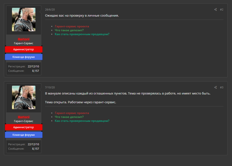 Гарант должен убедить покупателя в безопасности схемы. Покупатель переводит ему деньги как независимому лицу. А после того как покупатель убедится, что схема работает, деньги от гаранта уходят продавцу. Но никто не может поручиться, что все эти два человека — не одно и то же лицо.