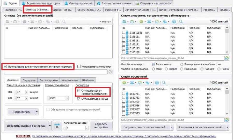 - Установить Ограничение для аккаунтов, чтобы отписаться. Лучше держать это ниже 200 одновременно.