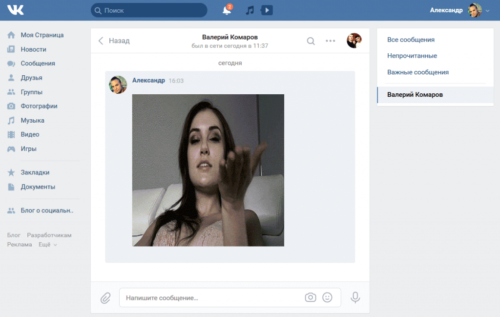 Данная методика является самой простой, однако требует наличия ранее загруженной на сайт гифки каким-либо пользователем ВК. Для этих целей отлично подойдут изображения, отправленные вам через систему обмена сообщений или картинки, расположенные в тематических сообществах.