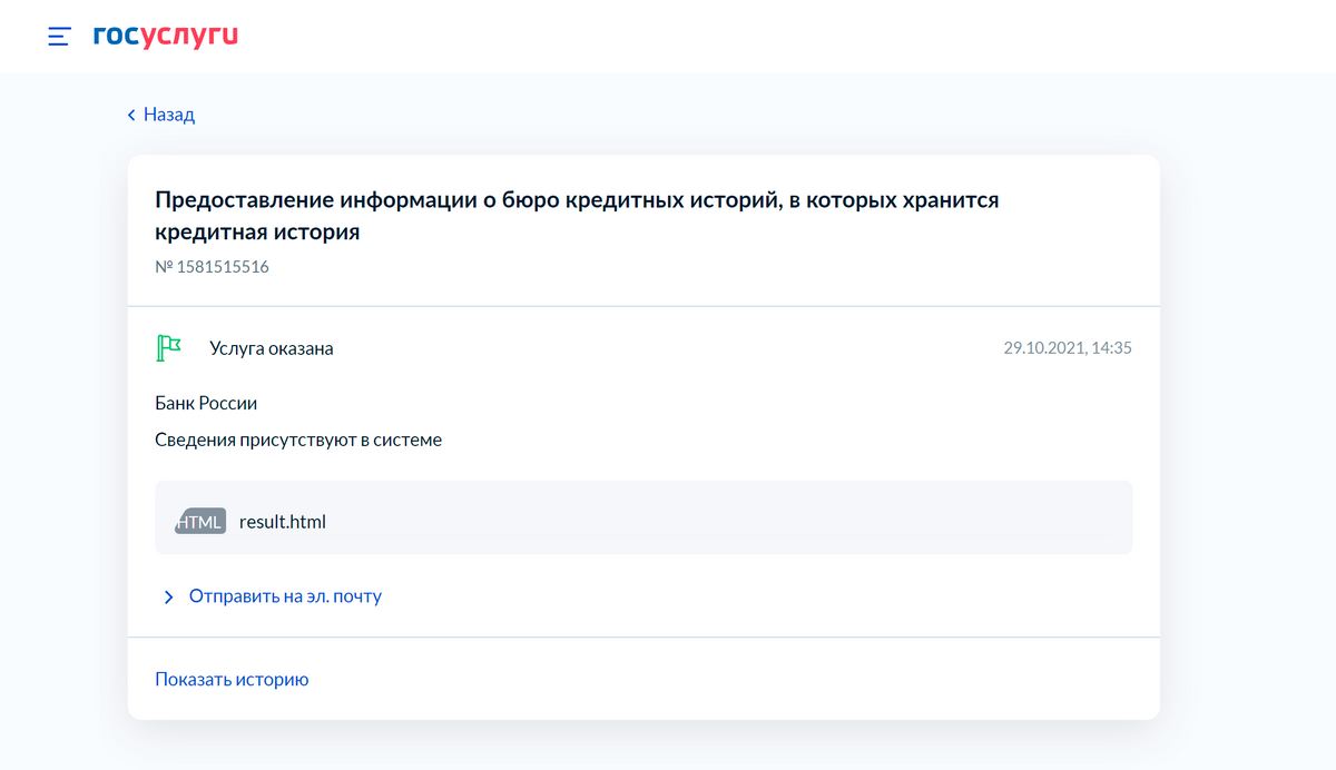 Список бюро кредитных историй — это файл с данными, который отправят на электронную почту