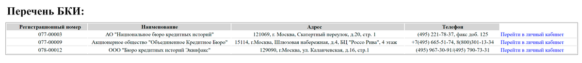 Мне прислали список из трех бюро, достаточно запросить данные из одного на выбор