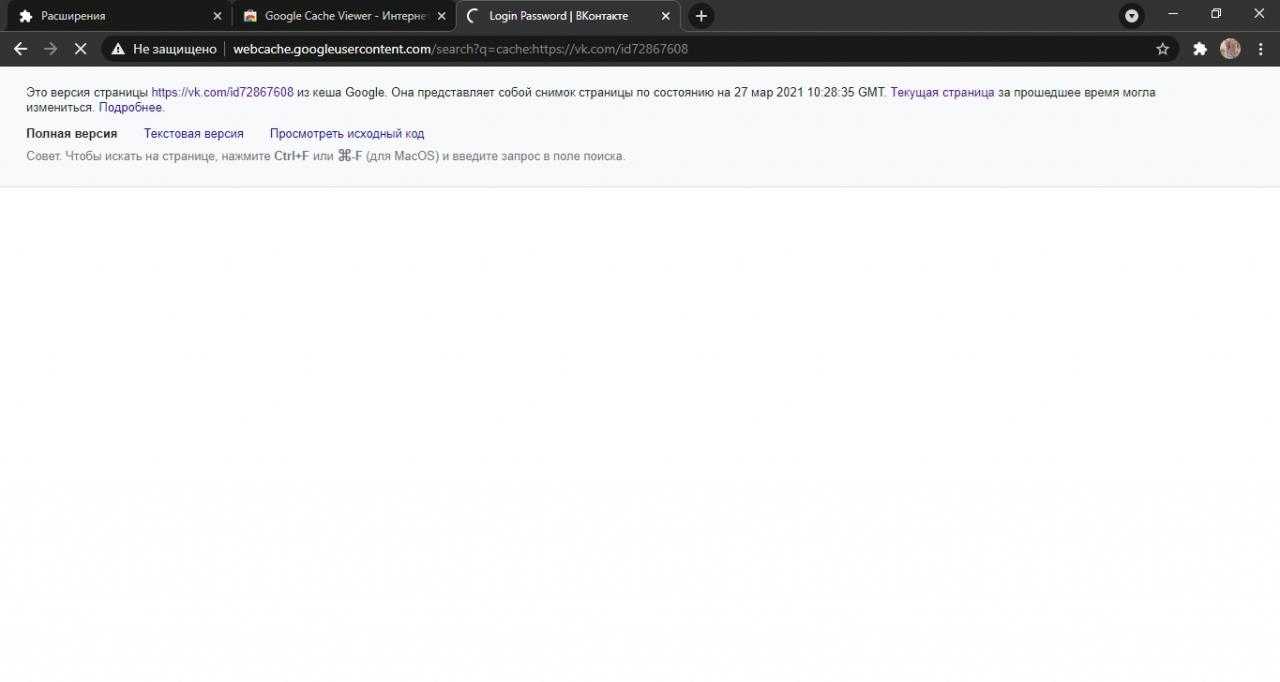 Как найти кеш сайта в Google