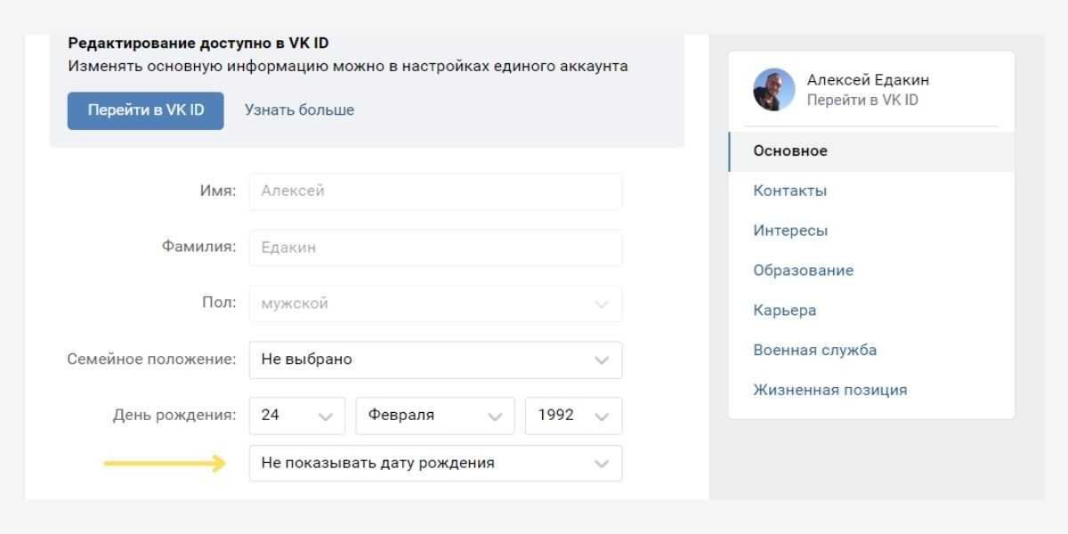 Как скрыть дату рождения