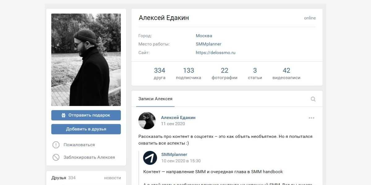 - Кнопки «Добавить в друзья», «Отправить подарок» и «Написать сообщение» – последнее тоже можно убрать.
