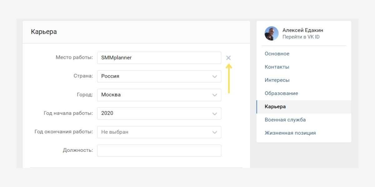 Как удалить место работы