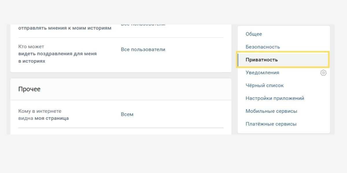 Выберите раздел «Приватность». Разделы находятся в правом столбце.