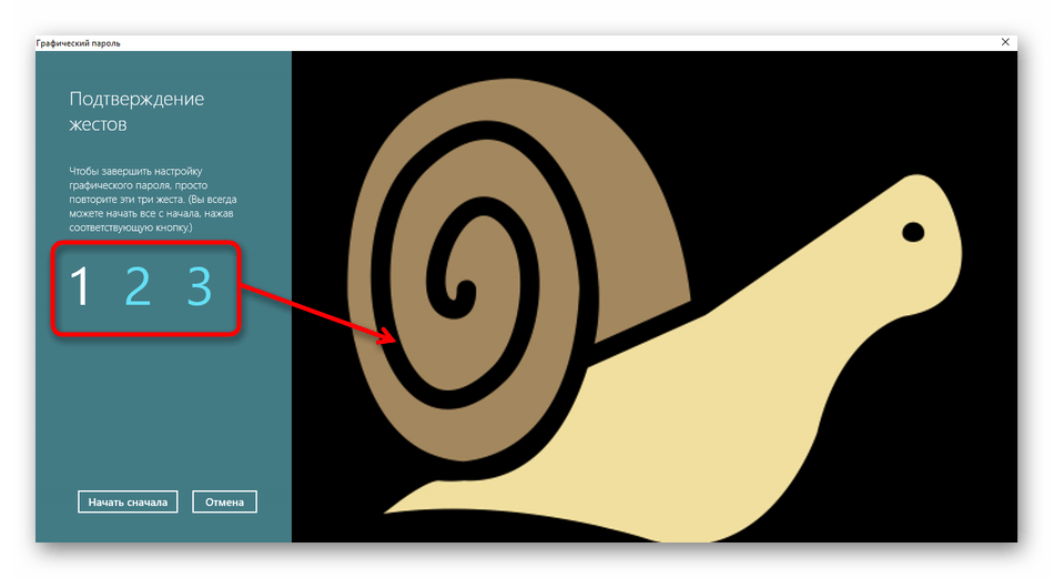 Выполните трижды одно и то же действие на картинке для создания пароля, например, проведите линии или нажмите по конкретным точкам.