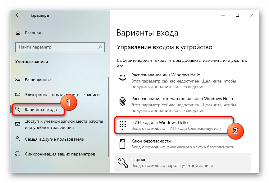 - В том же разделе «Варианты входа» выберите «ПИН-код для Windows Hello».