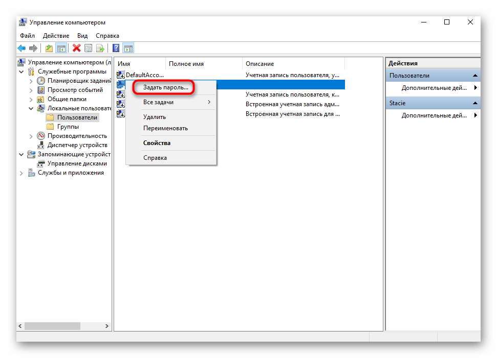 Способ 4: Установка стандартного пароля через «Управление компьютером»