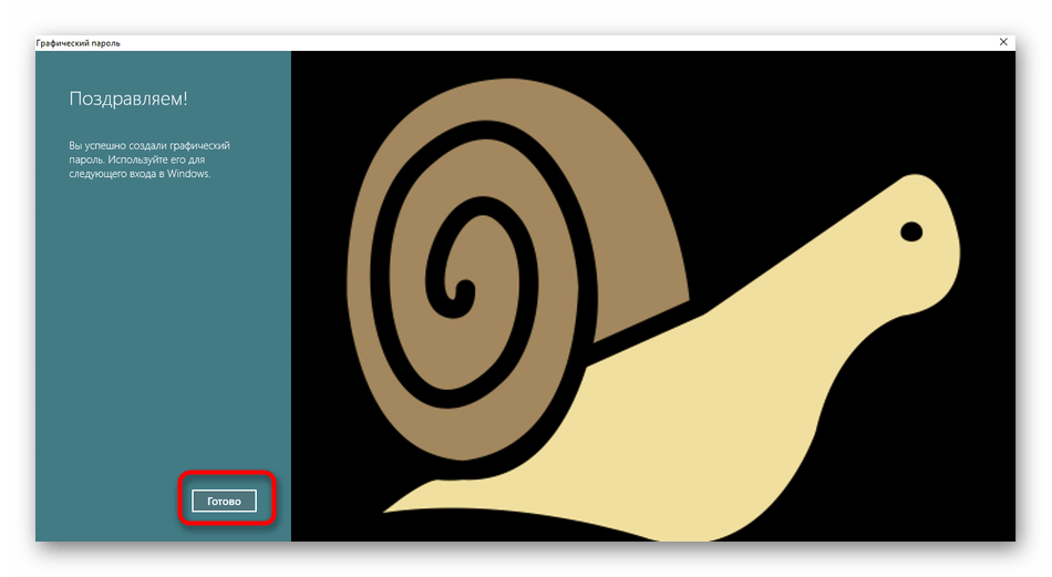 Вы будете уведомлены о том, что создание графического ключа прошло успешно и его можно использовать при входе в Windows.