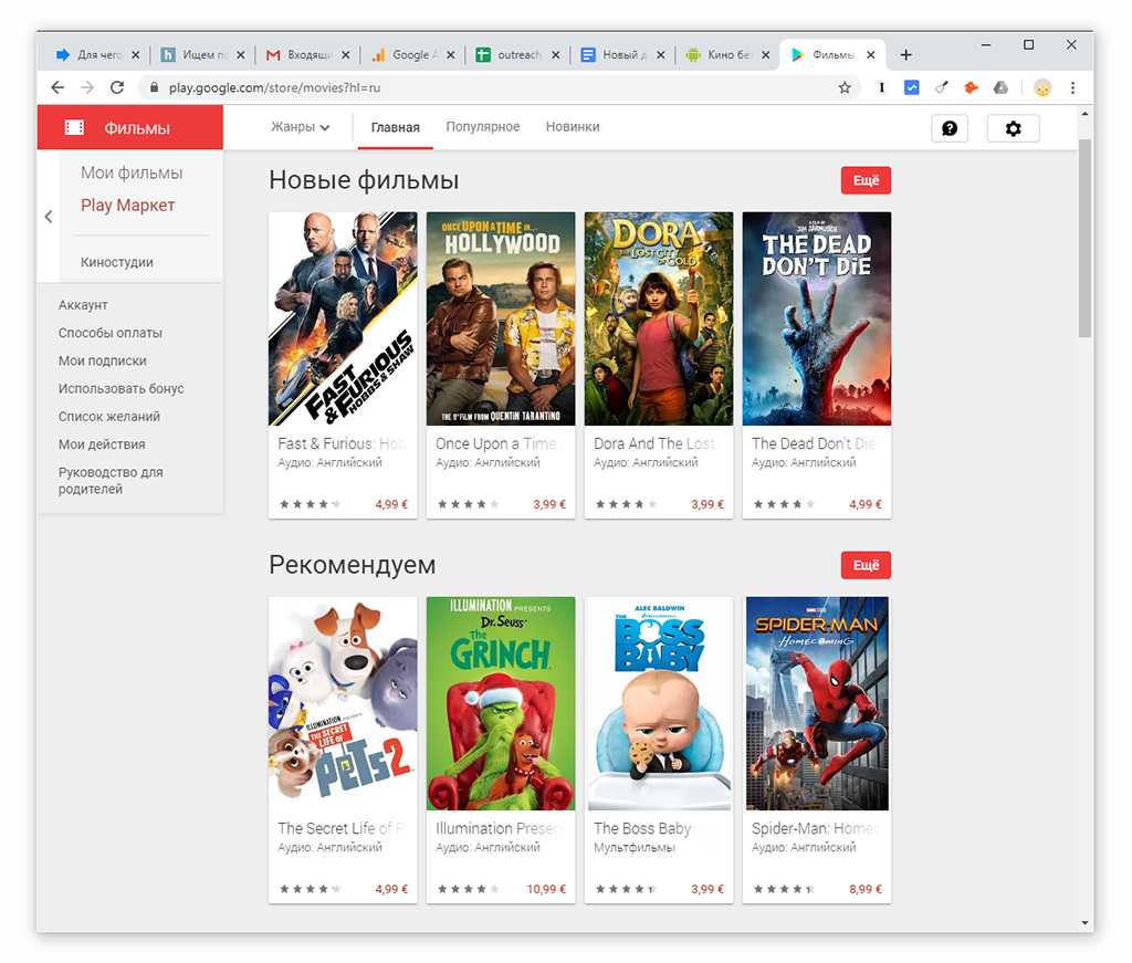 При покупке фильма обращайте внимание на то, на каком языке он доступен. На главной странице сервиса в основном высвечиваются фильмы на английском, но можно найти и версии с русским переводом