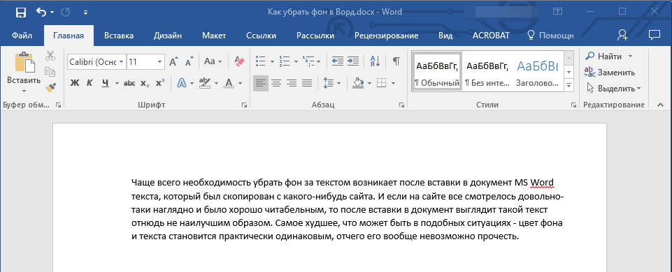 Чаще всего необходимость убрать фон за текстом возникает после вставки в документ MS Word текста, который был скопирован с какого-нибудь сайта. И если на сайте все смотрелось довольно-таки наглядно и было хорошо читабельным, то после вставки в документ выглядит такой текст отнюдь не наилучшим образом. Самое худшее, что может быть в подобных ситуациях — цвет фона и текста становится практически одинаковым, отчего его вообще невозможно прочесть.