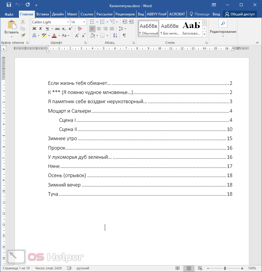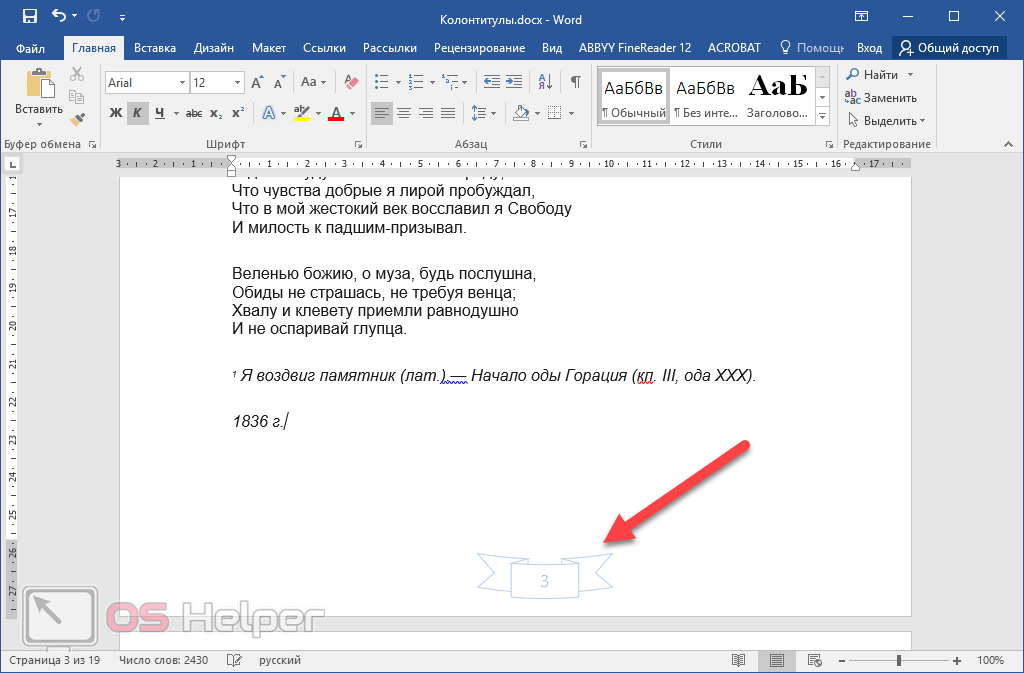 В качестве примера будем использовать файл со стихами Пушкина, в котором содержится большое количество страниц.