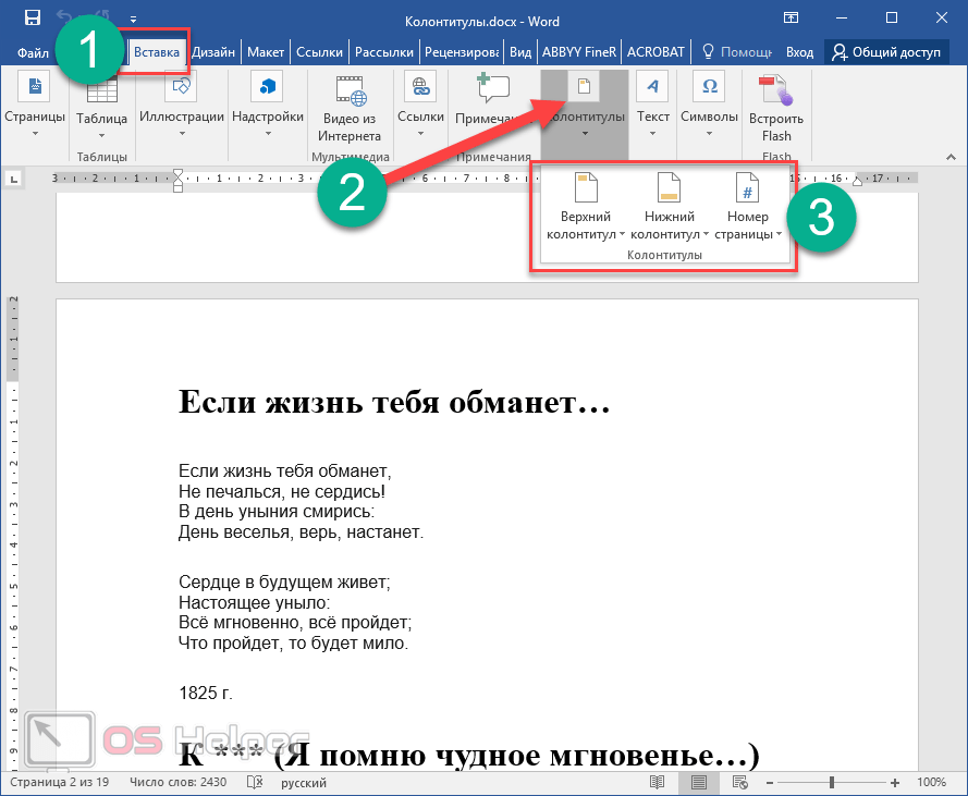 Пользоваться колонтитулами довольно просто. Для этого необходимо следовать следующим указаниям.