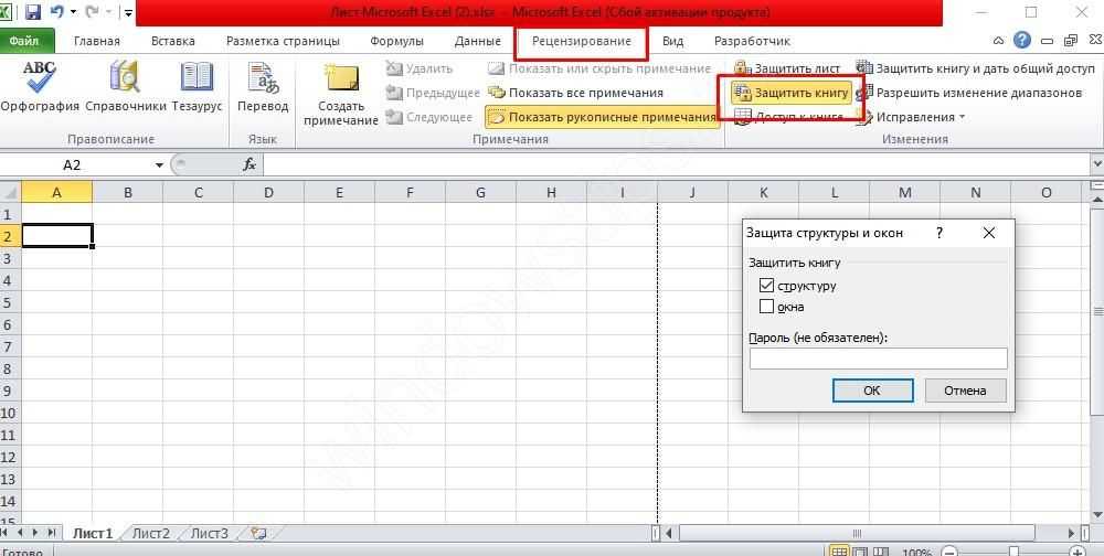 Если поставить пароль, можно получить более высокую эффективность. При его отсутствии защита может быть отменена в любой момент, что позволит внести изменения в книгу.