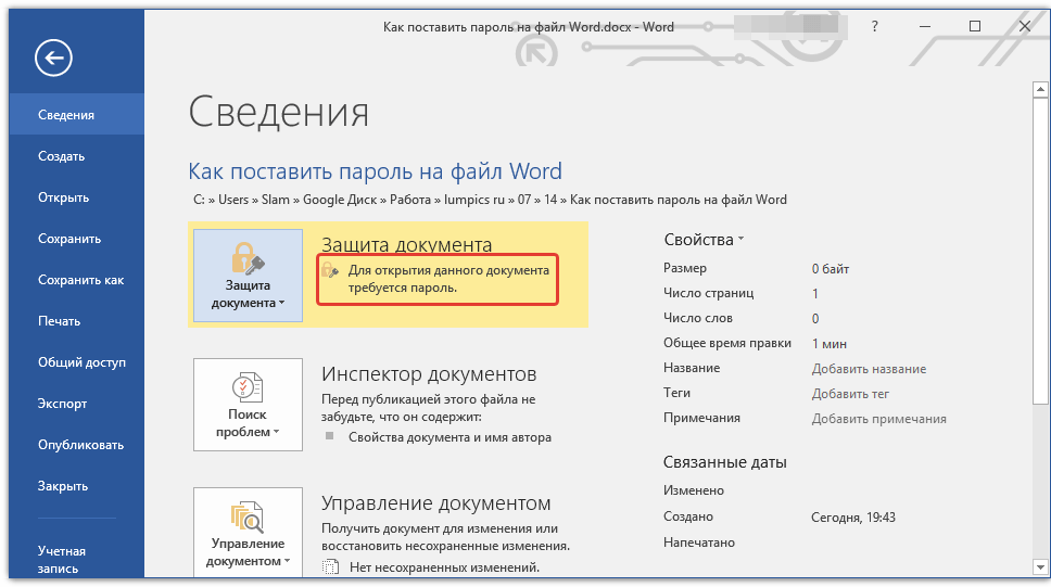 После того, как вы сохраните и закроете этот документ, получить доступ к его содержимому можно будет только после ввода пароля.