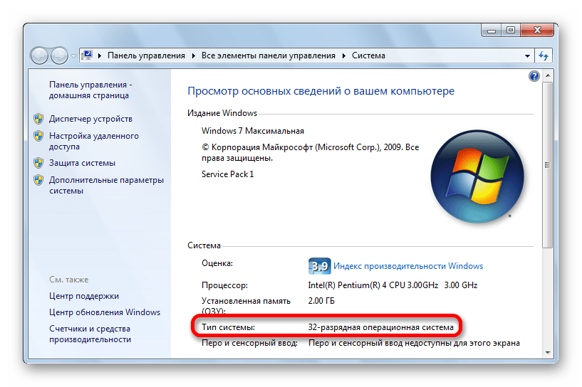 Заметка: перед скачиванием файла убедитесь в том, что данный файл подходит под разрядность вашей системы (bit32, bit64). Сделать это можно следующим образом: ПКМ по значку «Мой компьютер» — «Свойства». В появившемся окне прочтите всю необходимую вам информацию о типе системы.
