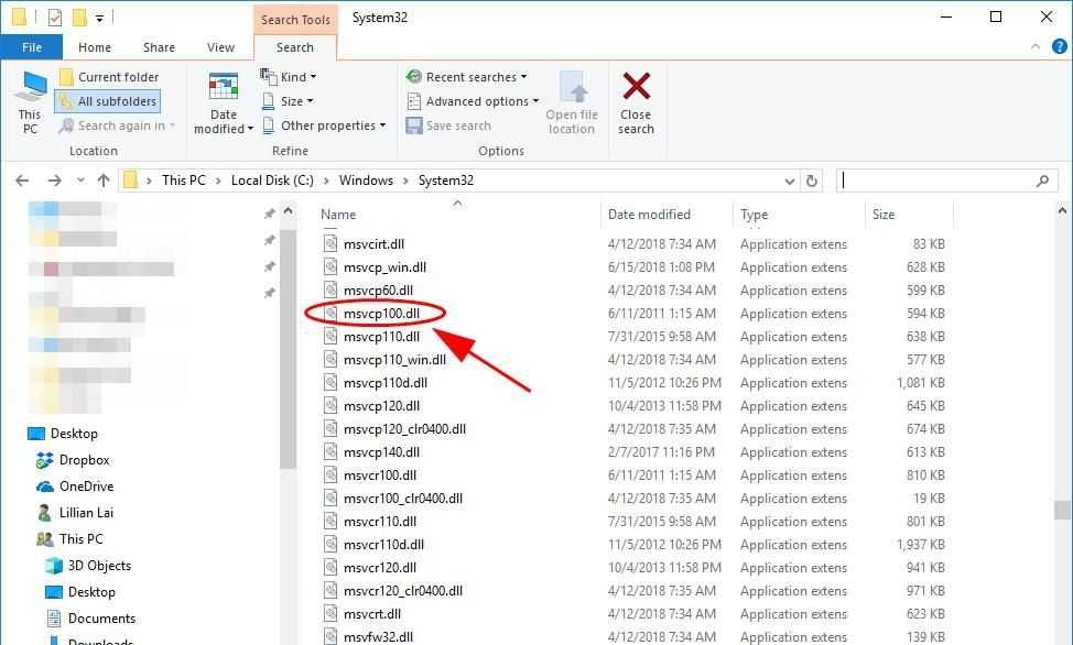 2) На этом компьютере откройте проводник (нажав Windows logo key и ЯВЛЯЕТСЯ на клавиатуре), затем перейдите к C: Windows System32 и скопируйте туда msvcp100.dll.