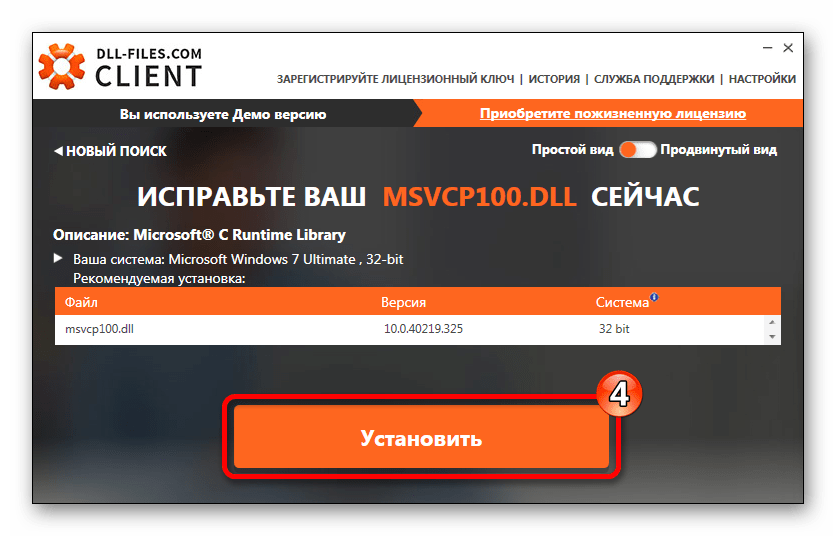 У приложения имеется специальный режим, где оно предлагает пользователю на выбор несколько версий. Если игре нужна конкретная msvcp100.dll, то можно ее здесь найти. Для выбора подходящего файла проделайте такие шаги: