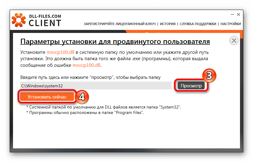 Ручная установка библиотеки msvcp100.dll
