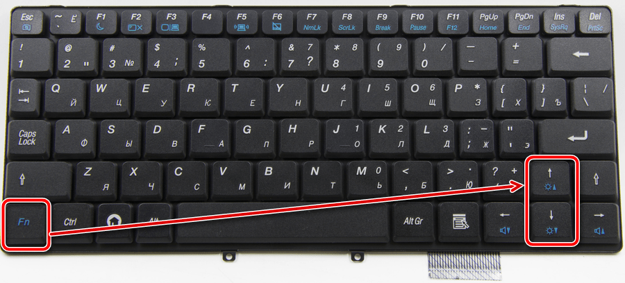 либо любой другой отмеченной клавиши. Часто яркость меняется комбинацией со стрелочками, однако все зависит от производителя оборудования. Внимательно изучите клавиатуру, чтобы на ней необходимую функциональную клавишу.