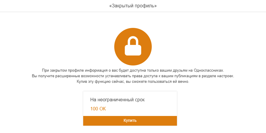 Закрытый профиль обойдется в 100 рублей