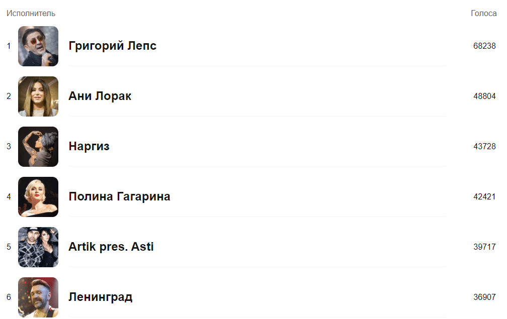 В голосовании приняло участие 1,3 миллиона человек. Итог оказался вполне предсказуемым: в голосовании «Одноклассников» победили артисты, которые вписываются в формат вещания Первого канала. Рекламодатели, которые приходят в эту соцсеть, могут сделать еще один вывод об общей типологии аудитории.