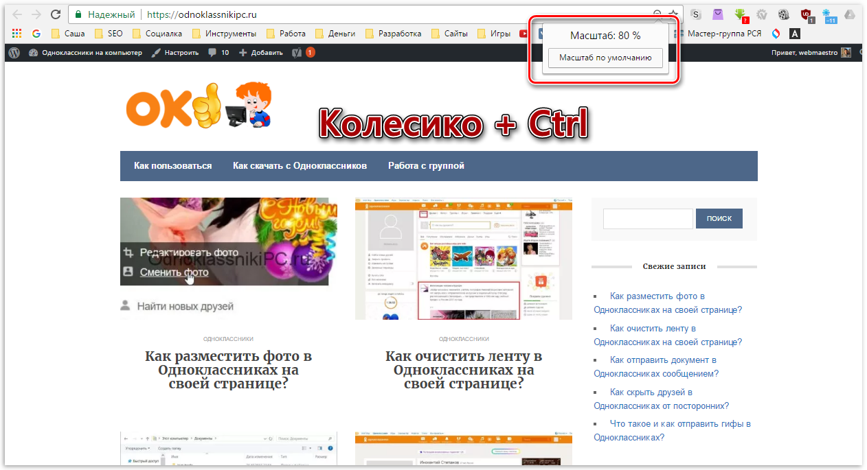 Видео: Как в одноклассниках уменьшить ( увеличить ) масштаб странички.Скачать
