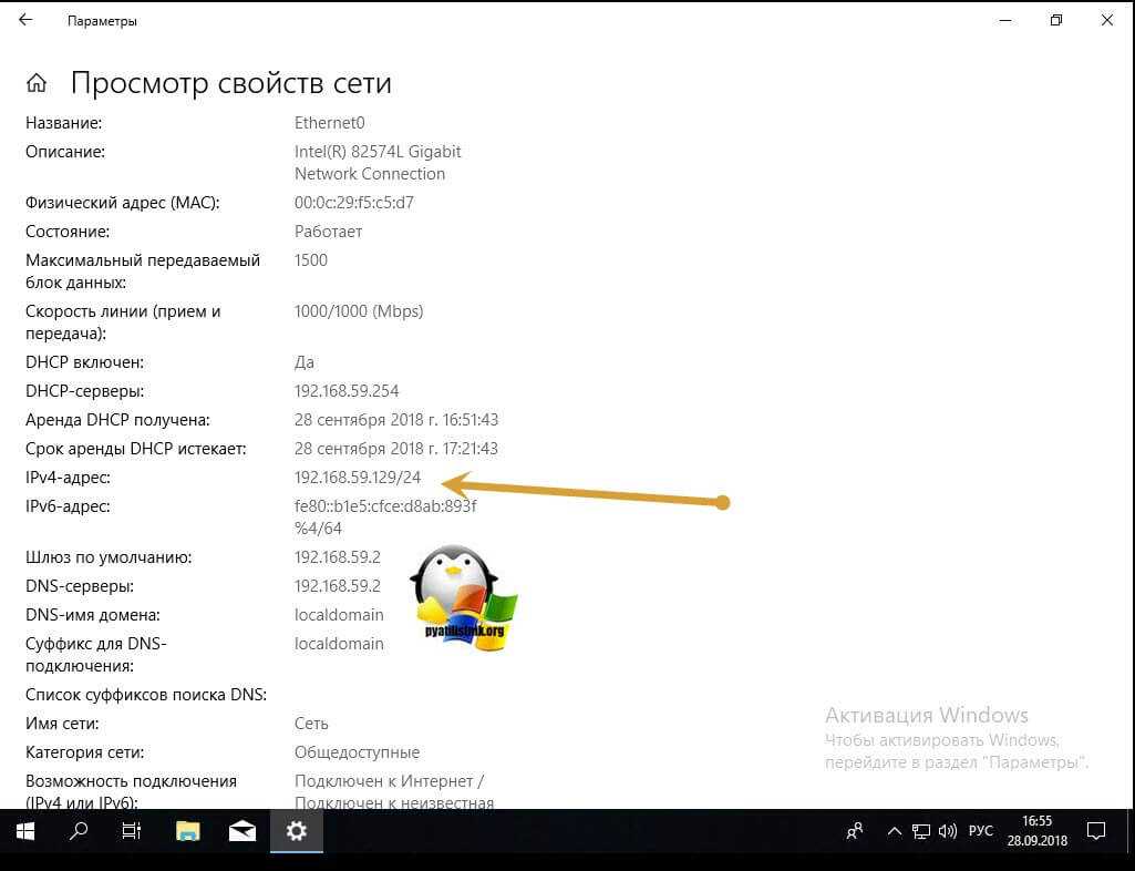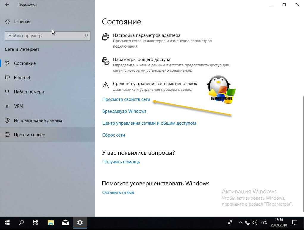 Найдите пункт «Состояние — Просмотр свойств сети». В данном пункте, вам будет отображен ip адрес Windows 10.