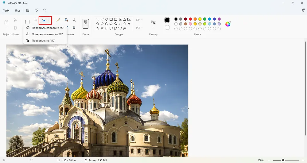 Вряд ли кто-то не знаком с этой простенькой программой, которая входит в стандартный пакет Microsoft Windows. Проще всего открыть снимок в данном редакторе можно следующим образом. Найдите нужную фотографию на своем ПК, нажмите на нее правой кнопкой мышки и выберите пункт «Открыть с помощью». Далее среди перечня программ найдите Paint. Когда фотография откроется в редакторе, нажмите на значок треугольника со стрелочкой. Так вы сможете повернуть картинку вправо или влево на 90 градусов или совершить полный поворот на 180.