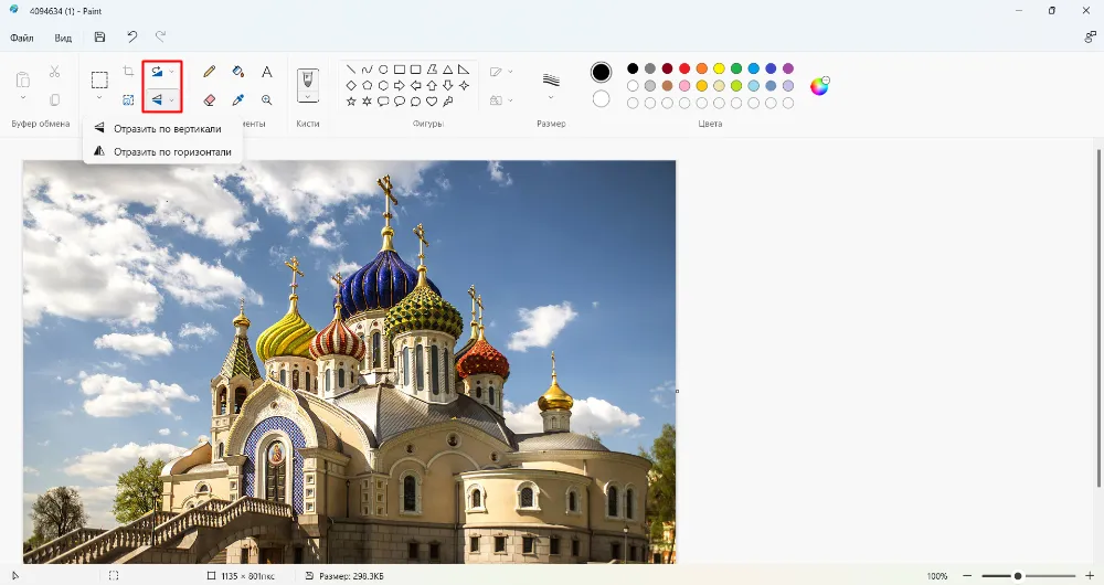 Если вам нужно отобразить снимок по вертикали или горизонтали, переместитесь на значок, расположенный ниже. Он тоже представляет собой изображение двух треугольников, но без стрелочки.