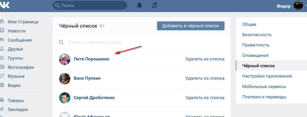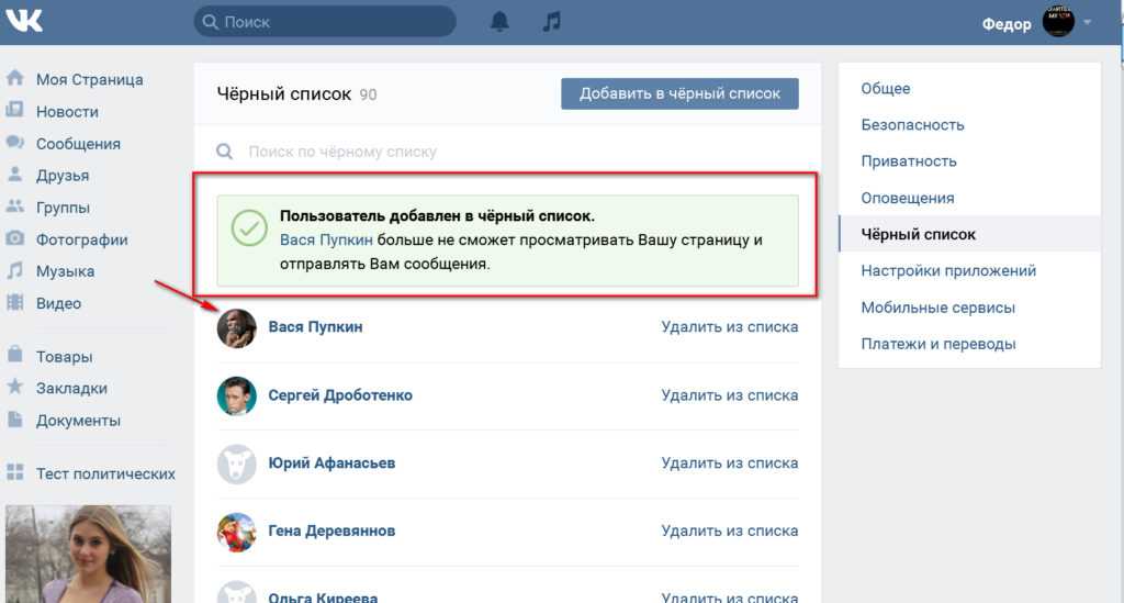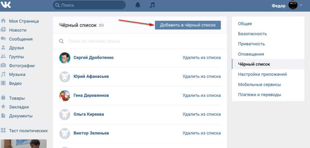 Где ВКонтакте черный список Как занести человека в черный список ВКонтакте и убрать из черного списка
