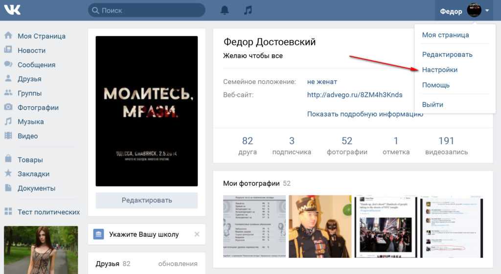 - нужно войти в свой аккаунт ВКонтакте;