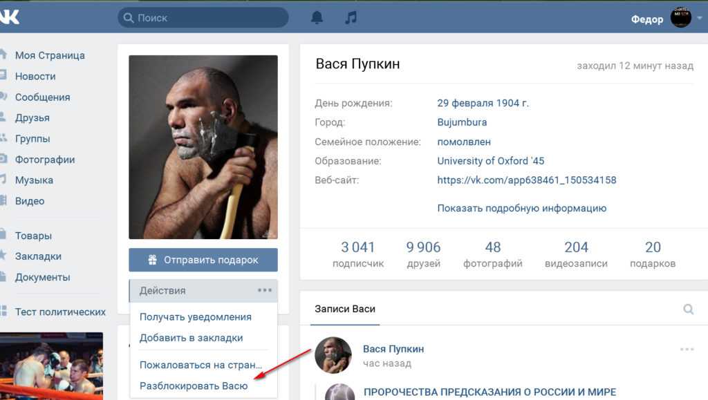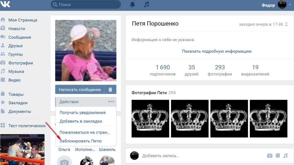 Как добавить человека в черный список в ВК