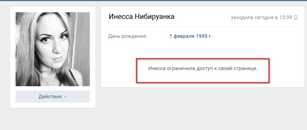 Данный пользователь, когда будет заходить к вам на страничку, сможет видеть лишь такую картину с аватором, именем и сообщением, что вы ограничили доступ к своей страничке.