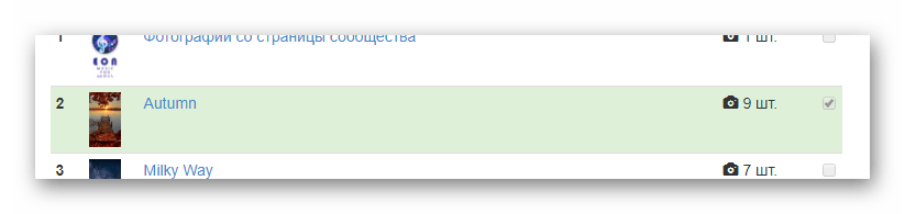 - Чтобы скачать весь альбом с фотографиями с вконтакте целиком, можете поставить галочку на конкретной папке и нажать на кнопку скачивания, после чего архив с изображениями сохранится в папку «Загрузки»