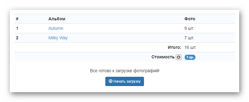 На следующей странице перепроверьте список скачиваемых фото и нажмите кнопку «Начать загрузку».