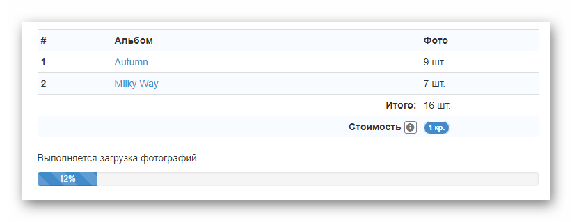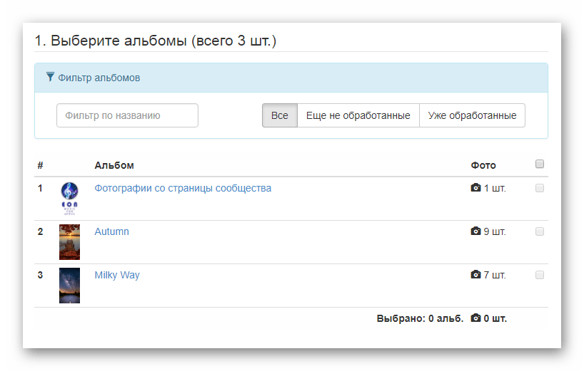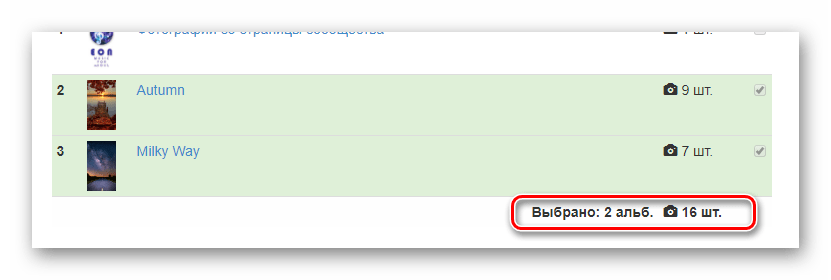 В случае выбора сразу нескольких альбомов подсчет общего количества фотографий происходит автоматически.
