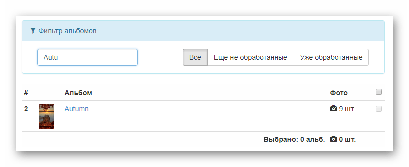 После успешного поиска существующих фотоальбомов полный список будет представлен ниже ранее используемых полей.