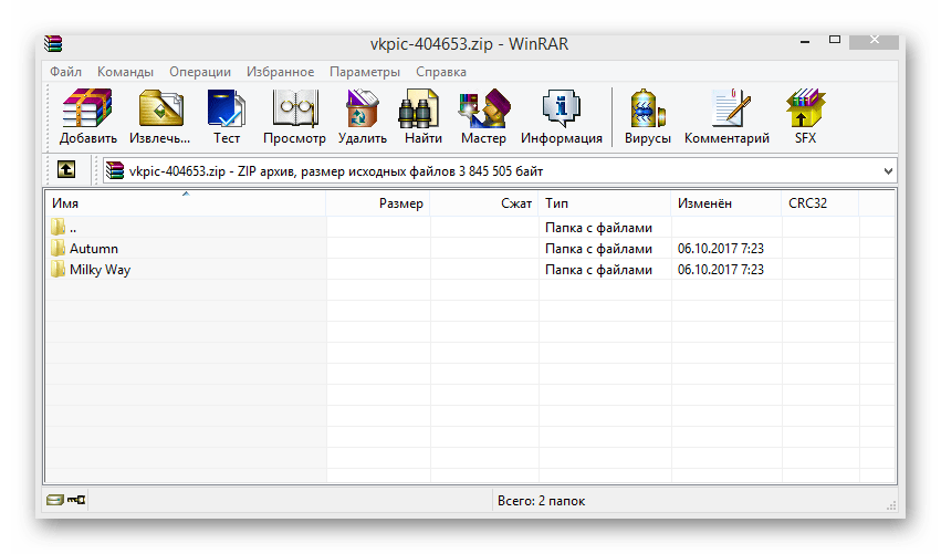 В архиве будут представлены папки, чье название напрямую зависит от выбранных альбомов ВКонтакте.