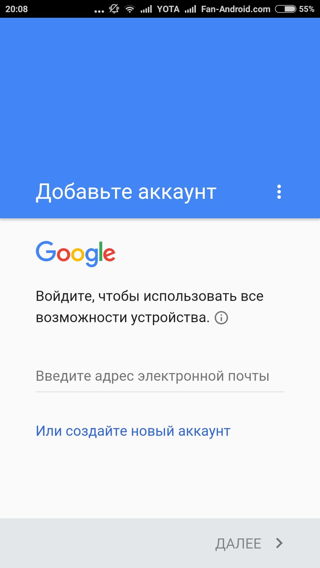 Теперь перезагружаем свое устройство. Убедитесь, что сообщение Выполните вход в один из аккаунтов владельца устройства больше не появляется. Создаем новый аккаунт Google и записываем данные от него в надежном месте.