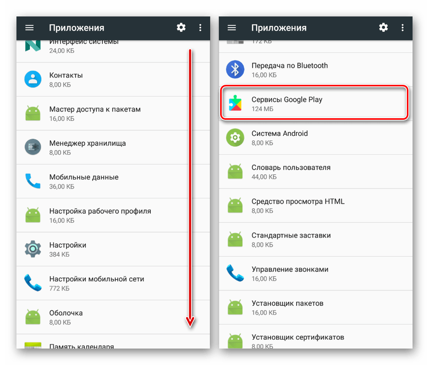 Давайте начнем с «Google Services Framework». Найдите его и нажмите на него.