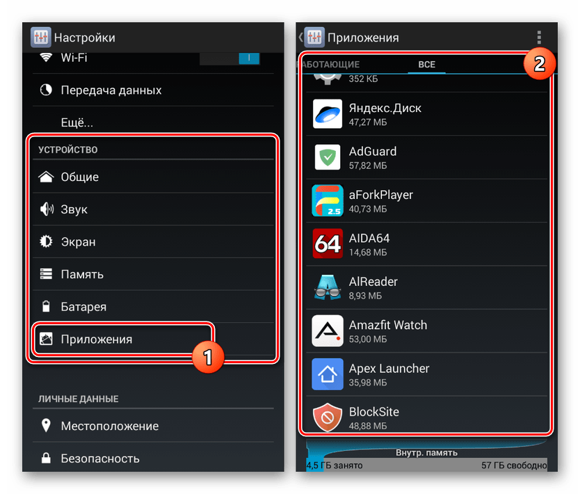 Для этого войдите в «Настройки» и выберите «Приложения». Теперь пошевелить пальцем в сторону, чтобы просмотреть все приложения или нажмите «диспетчер приложений» (верху первый в списке) – зависит от версии андроид.